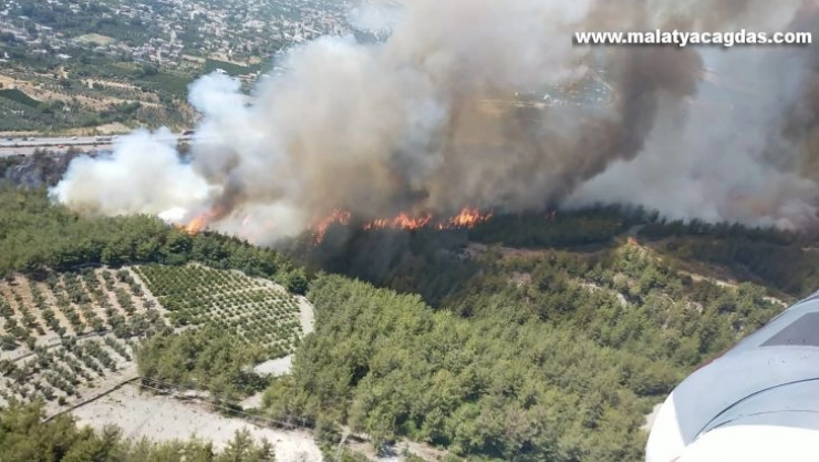 Yangına 2 helikopter, 5 arazöz ve 3 yer ekibi müdahale ediyor.