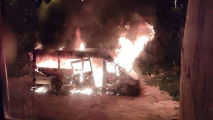Hatay’ın Samandağ ilçesinde park halindeki öğrenci servisi , iddiaya göre kimliği belirsiz kişiler tarafından kundaklandı.