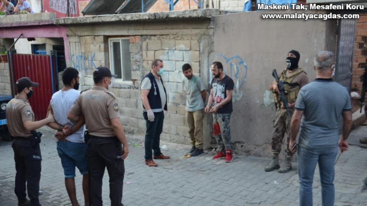 Narkotik köpeklerinin de katıldığı operasyonda evler tek tek arandı. Operasyonda 1.53 gram eroin, 13.56 gram satışa hazır fişekler halinde esrar maddesi, 4 kök Hint keneviri, 47.80 gram metanfetamin uyuşturucu maddesi, 1 adet ruhsatsız tabanca, 1 adet pompalı tüfek, 4 adet av tüfeği, 2 adet kesici alet, 106 fişek, 4 bin 800 TL para ele geçirildi.