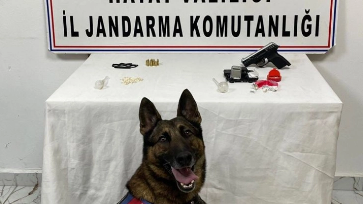 Hassa İlçe Jandarma Komutanlığı dedektifleri JASAT ile Kırıkhan İlçe Jandarma Komutanlığı ekipleri ve KOM Şube Müdürlüğünün uyuşturucu madde arama köpeği "Volta" ve "Kobra" ile birlikte yapılan operasyon sonucunda Kırıkhan ilçe merkezinde ikamet eden A.Y. ile M.Y. isimli şahısların evinde yapılan aramada 1 adet ruhsatsız tabanca ve şarjör, 12 adet fişek, 1 adet muşta, 1 adet hassas terazi, 70 adet Captagon hap, 5 gram metamfetamin ve 1 gram kubar esrar maddesi ile Akbez Mahallesinde icra edilen yol kontrol noktasında yakalanan N.Y. isimli şahsa ait eşya içerisinde, bin 340 paket kaçak sigara ile 21 adet 100 cl’lik kaçak viski ele geçirildi.
