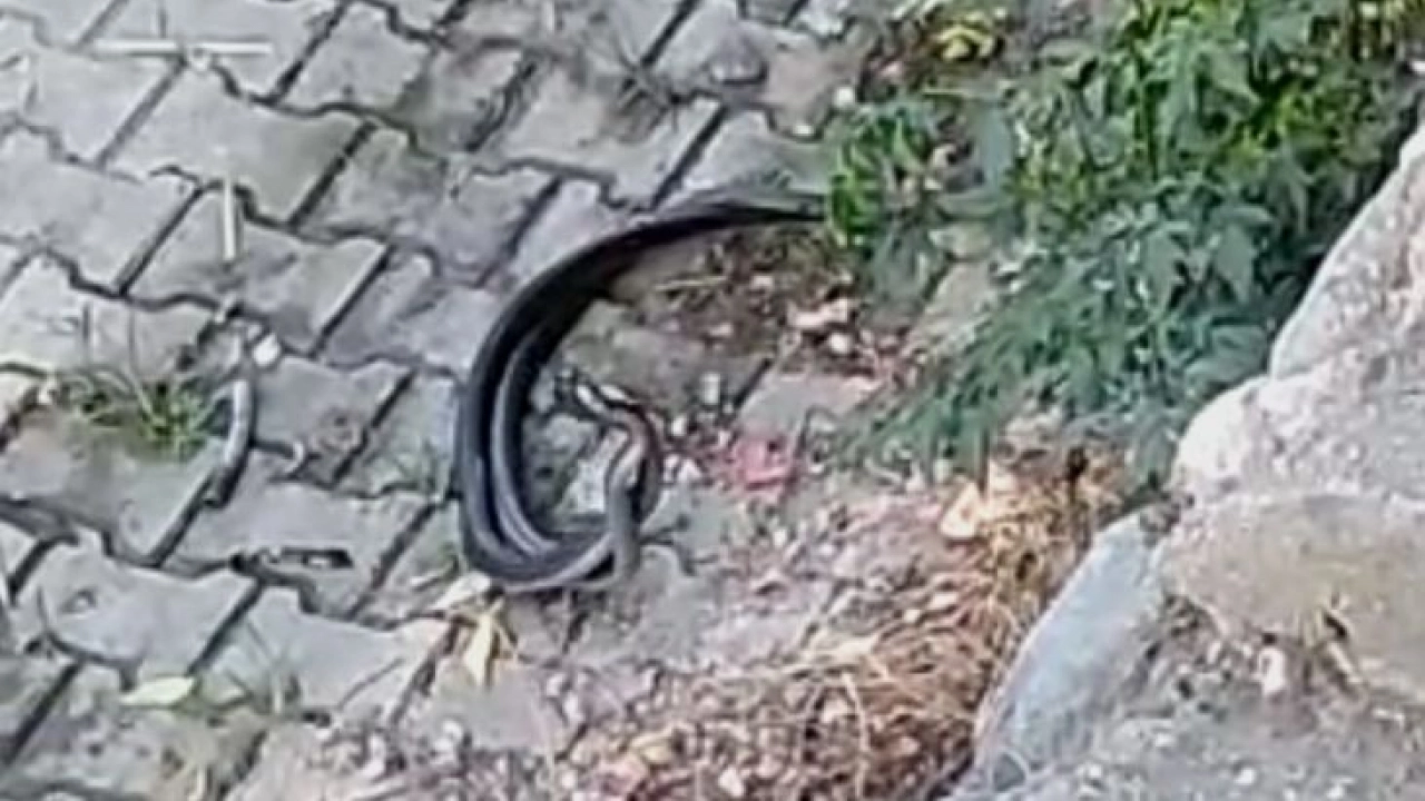 Hatay'ın Samandağ ilçesinde yaklaşık 2 metre uzunluğundaki iki siyah yılanın dansı cep telefonu kamerasına yansıdı.