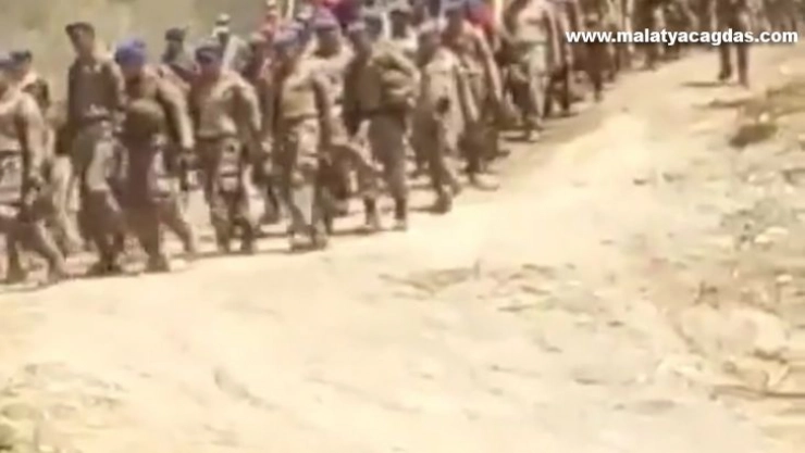 Hatay’ın Dörtyol ilçesi Şifalısu bölgesinde çıkan yangını söndüren Mehmetçik, komando marşı eşliğinde birliğine geri döndü.