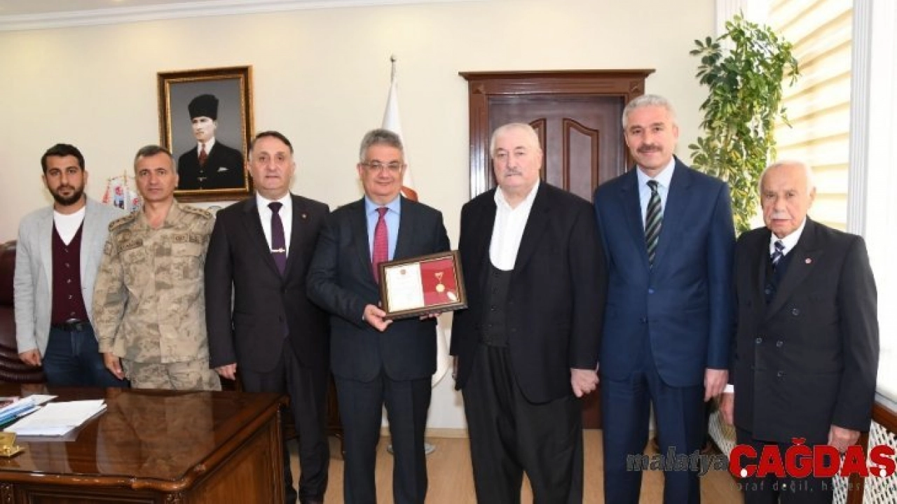 Türk Silahlı Kuvvetlerini Güçlendirme Vakfı Mersin Bölge Temsilcisi Faik Karadeniz ve Besni TSKGV Tanıtım Kurulu Başkanı Ali Erdoğan Vali Aykut Pekmez’i makamında ziyaret etti. Vali Aykut Pekmez, Türk Silahlı Kuvvetlerini Güçlendirme Vakfı’na yaptığı maddi ve manevi katkılarından dolayı TSKGV tarafından adına düzenlenen altın madalya ve beraatını hayırsever Abuzer Yıldırım’a verdi.