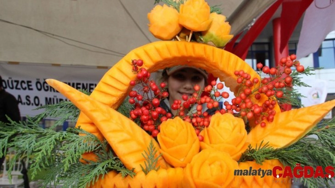 DÜZCE(İHA) – Tatil bölgelerinde yemek masalarının vazgeçilmezi olan, fuarlarda ise dikkat çekmek için karpuz gibi şekil vermesi kolay meyvelerden yapılan çeşitli figürler, maharetli ellerde kabağa taşındı.