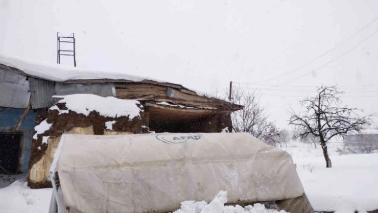 Elazığ'da hayvanlarının yemi yoğun kar yağışı sebebiyle yıkılan çadırın altında alan engelli vatandaşın yardımına jandarma koştu.