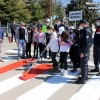 Trafik polislerinin öncülük yaptığı uygulamada karayoluna çizilen kırmızıçizgilerde, sürücülerin yayalara öncelik vermesi uygulamalı olarak yapıldı.