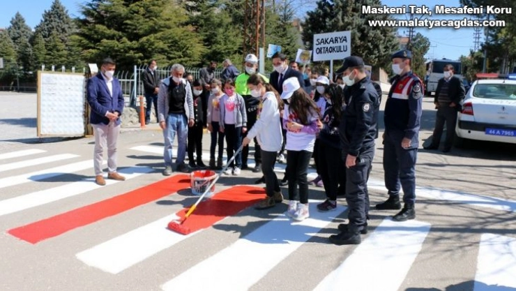 Malatya'nın Hekimhan İlçesi'nde, yaya geçidi kırmızıya boyandı. 'Trafikte kırmızıçizgimiz' uygulaması yapıldı.