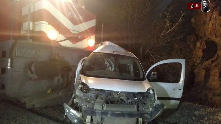 Malatya'nın Hekimhan ilçesinde hemzemin geçitte yük treninin çarptığı hafif ticari aracın sürücüsü yaralandı.