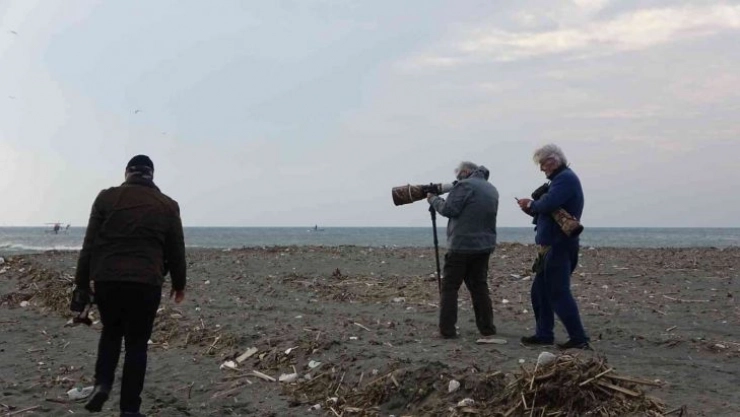 Hatay'ın Samandağ ilçesinde ilk kez görülen Çatal Kuyruklu Martıyı fotoğraflamak için vatandaşlar bir biriyle yarıştı.