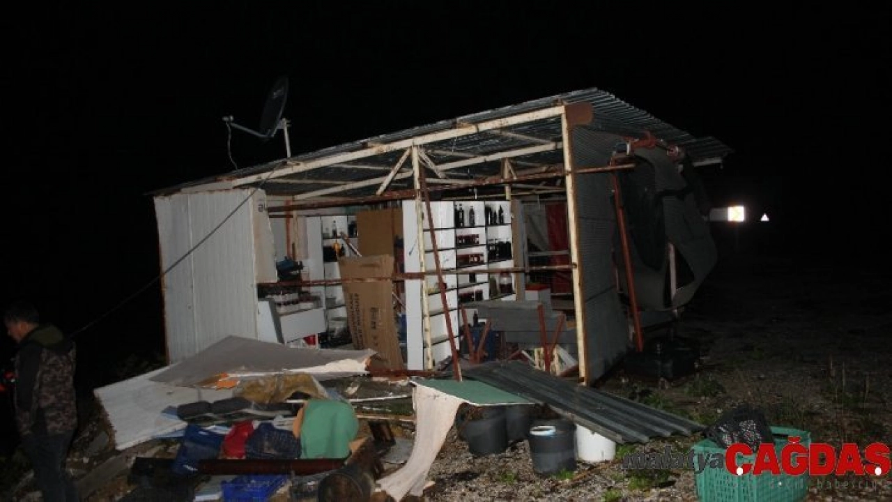 Antalya’nın Manavgat ilçesinde dün gece etkili olan hortum birçok iş yerini yerle bir ederken, binaların çatılarını yüzlerce metre ileriye fırlattı. Antalya-Konya yolu üzerinde Hacıobası Mahallesi’nde akaryakıt istasyonunda park halindeki tırın dorsesi, hortumun etkisiyle havalanıp yanında bulunan kamyona çarptı. Hacıobası Mahallesi’nde restoran ve seyyar manavı yerle bir eden hortum, Mehmet Kaplan isimli vatandaşa ait muz serasında da büyük çapta hasara yol açtı. Manavgat Kaymakamı Dr. Mustafa Yiğit, havanın aydınlanmasının ardından jandarma ve ilçe tarım müdürlüğü yetkilileriyle birlikte zarar gören bölgelerde incelemelerde bulundu.