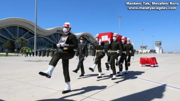 Hatay Havalimanı’nda uğurlama töreninin ardından şehit Osman Alp’in naaşı hava yoluyla memleketi Manisa’ya gönderildi.
