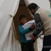 Saldırılar nedeniyle Suriye’nin İdlib ilinin güney kırsalından Afrin ilçesine göç eden sivillere insani yardım malzemesi dağıtıldı.