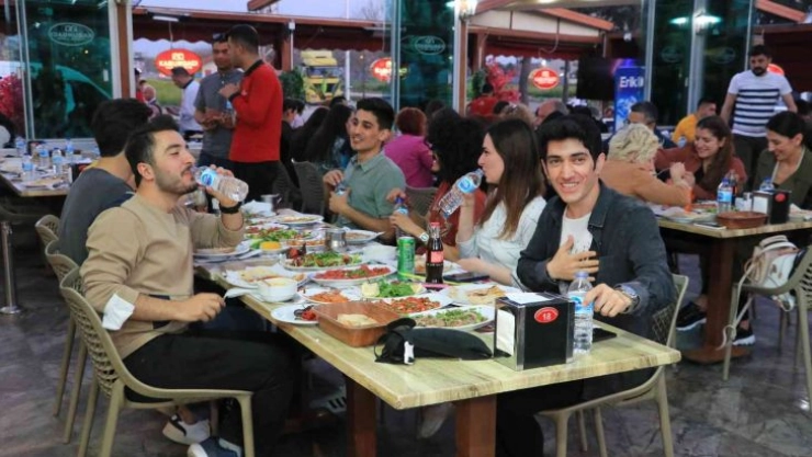 Korona virüs pandemisi nedeniyle 2 sene sonra restoranlarda açılan ilk iftarda Adana’da vatandaşlar kebapçılara akın etti.