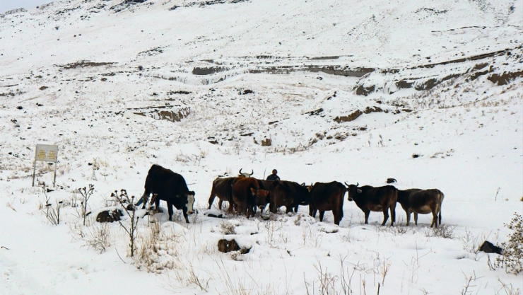 Iğdır'ın dağ köylerinde mevsimin ilk karı yağdı, besicilerin zorlu kış mesaisi başladı.