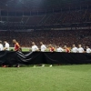 Taraftarlar da ‘Kadına uzanan eller kırılsın’ diye slogan atarken, ayrıca Mustafa Kemal Atatürk’ün ‘Ey kahraman Türk kadını sen yerde sürüklenmeye değil, omuzlar üzerinde göklere yükselmeye layıksın’ sözünün pankartını astı.