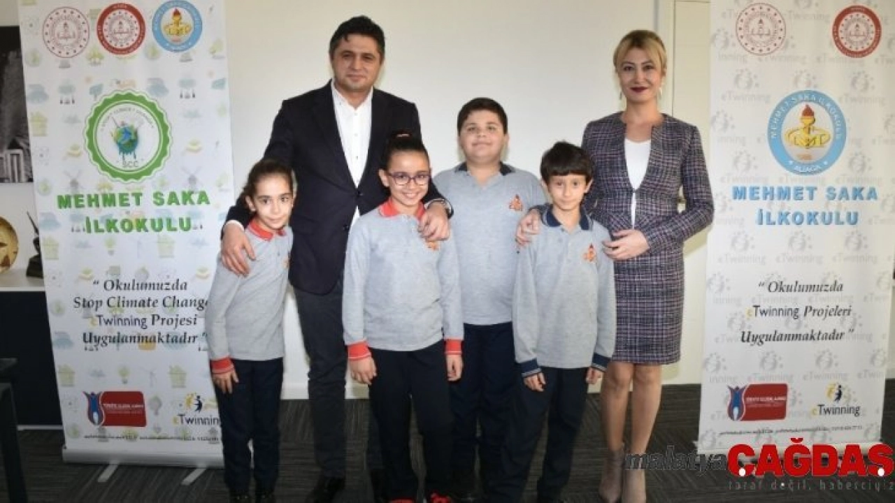 "İklim Değişikliğine Dur De!" (Stop Climate Change) isimli eTwinning projesi kapsamında Mehmet Saka İlkokulu öğrencileri, Aliağa Belediye Başkanı Serkan Acar’ı ziyaret etti. Acar, makamında ağırladığı öğrencilerle iklim değişikliği üzerine bir röportaj gerçekleştirdi. "İklim değişikliği nedir?", "İklim değişikliğinin sebepleri nelerdir?", "İklim değişikliği sonuçları nelerdir?" gibi soruları cevaplayan Acar, öğrencilerden tam not aldı.