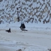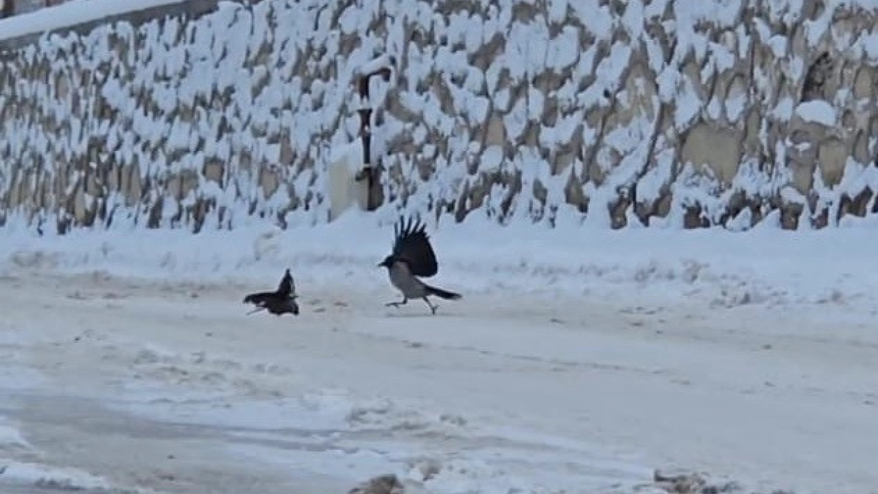 İlçe beyaza büründü, aç kalan kargalar sokaklara indi