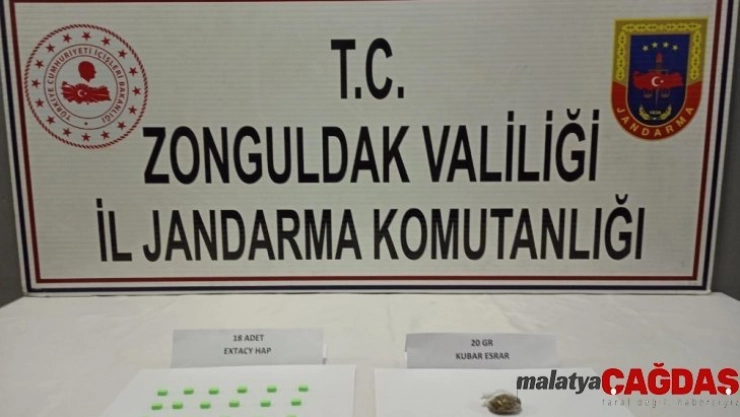 Edinilen bilgiye göre, Devrek İlçe Jandarma Komutanlığı ve Zonguldak İl Jandarma Komutanlığı İstihbarat Şube Müdürlüğü ekipleri, D.A. (26) isimli erkek ve M.Ö. (20) isimli kadının Ankara’dan temin ettikleri uyuşturucu maddeleri getirerek Zonguldak ve ilçelerinde piyasaya süreceği ihbarı üzerine harekete geçti. Takibe alınan araç, Devrek Cumhuriyet Başsavcılığından alınan arama kararına istinaden durduruldu. Yapılan aramada araçtaki D.A.’nın montunun cebinde 18 adet extacy hap ve yaklaşık 20 gram kubar esrar maddesi ele geçirildi. Zanlılar gözaltına alınırken, olayla ilgili başlatılan soruşturma sürüyor.