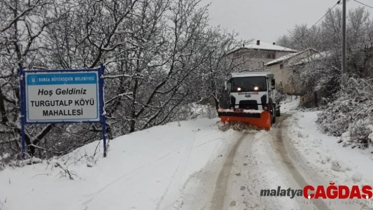 Bursa'nın İnegöl ilçesinde kar sebebiyle kapanan yollar nında ulaşıma açılıyor.