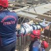 İnşaatı denetlerken düştü, vinçle kurtarıldı