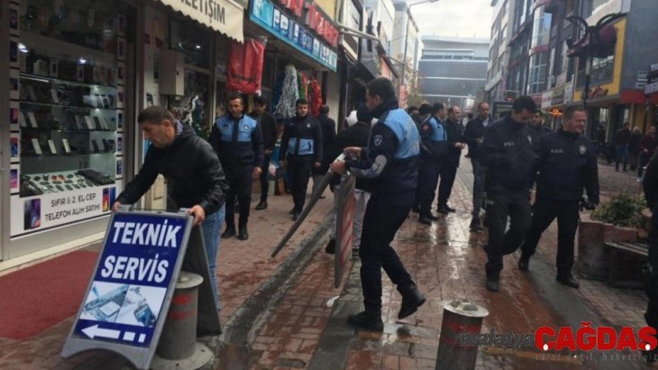 Van'ın İpekyolu Belediyesi Zabıta Müdürlüğü ekipleri, İpekyolu Kaymakamı ve Belediye Başkan Vekili Sinan Aslan'ın talimatları doğrultusunda yol ve kaldırım işgali yapan seyyar satıcılara yönelik çalışma yaptı.