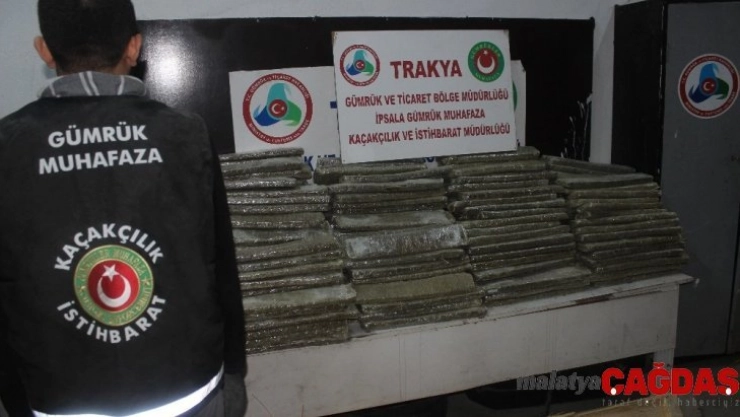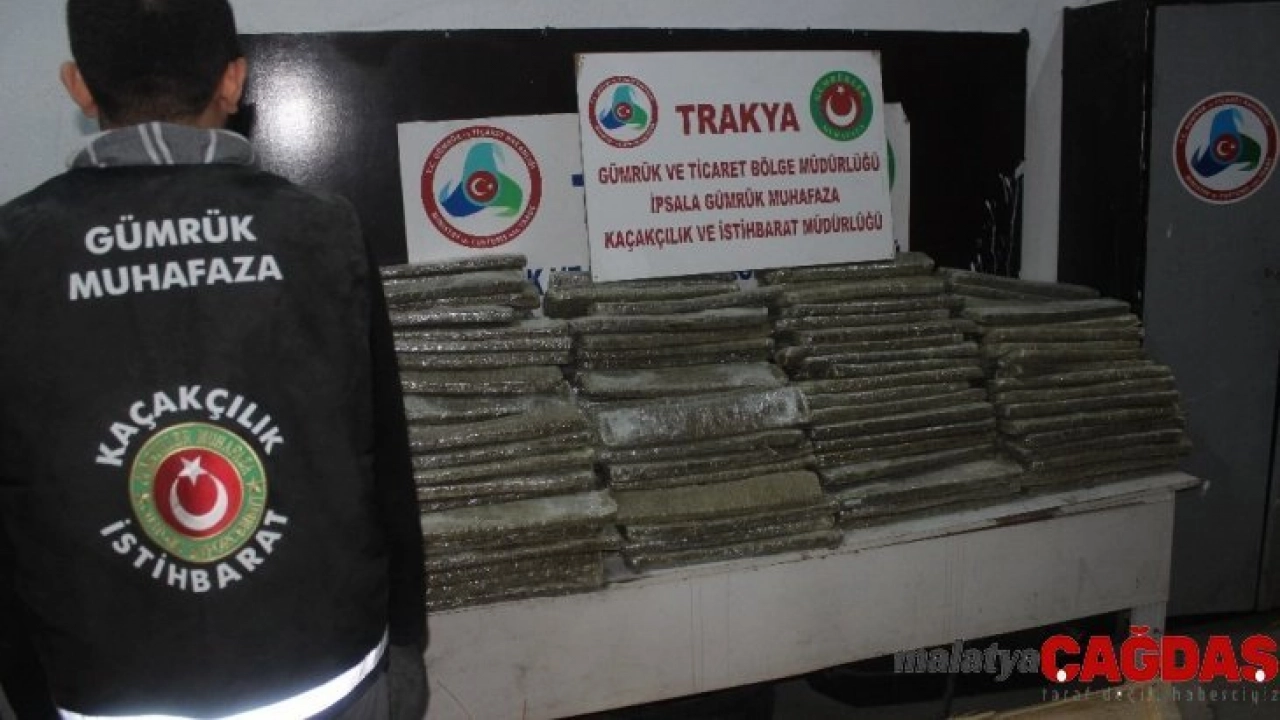 Ticaret Bakanlığı Gümrük Muhafaza ekiplerince İpsala Gümrük Kapısı'nda bir tırın dorse çıtaları içerisinde toplam 177 kilogram esrar ele geçirildi.