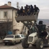 İlginç ve tehlikeli yolculuğun görüntüleri Ürgüp Sanayi Sitesinde kaydedildi. Seyir halinde olan bir iş makinesinin kepçesine binen 7 kişi tehlikeye aldırış etmeden kepçe içinde ayakta yolculuk yaptı.