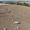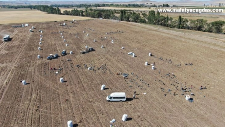 Sivas tohumluk patates üretiminde ilk sırada, yemeklik ve sanayi üretiminde ise ilk 10’da yer alıyor. Mayıs ayında ekimi yapılan tohumluk patatesler 4 ayın ardından hasada elverişli hale geldi. Kuraklığında etkili olduğu ilçede su azlığı nedeniyle tohumluk patatesler istenilen seviyede gelişim gösteremedi. Sivas’ın Ulaş ilçesinde bir tohumculuk firması tarafında bin 200 dönüm alana ekilen alanda tohumluk patates hasadı başladı. Şanlıurfa’dan gelen mevsimlik işçiler adeta karınca gibi çalışarak hasat edilen patatesleri elleriyle tek tek topladı. Toplanan patatesler Nevşehir’e gönderilmek üzere çuvallara dolduruldu. Yaklaşık 150 işçinin sıcağa rağmen harıl harıl çalışması drone ile havadan görüntülendi.