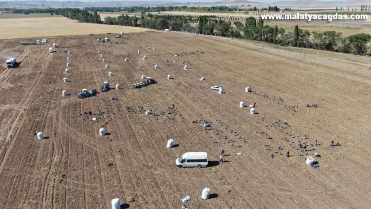 Tohumculuk firmasının sorumlusu İbrahim Çinçik, kuraklıktan dolayı patateslerin küçük olanlarını daha fazla büyütemediklerini belirterek, "Burada sertifikalı tohum yetiştiriyoruz. bin 200 dönüm civarında tohum ekili. Çeşitlerimiz sayamayacağımız kadar çok 40,50 çeşit var. 2-3 Mayıs gibi ektik. Şuanda hasat dönemi. Burası tohum bölgesi olduğu için üst kurutması yaptık. Üst kurutmayı tohumun fazla büyümemesi için yaptık. Büyük tohum ekim de ve hasatta zor oluyor tonajda sıkıntı oluyor. Bu senede biraz kurak geçti tohumu anca kendi tohum boyuna yetiştirebildik. Gördüğünüz gibi burada ki derede su yok, kurudu. Oraya güvenerek ektik. Her sene su oluyordu bu sene yukarıya da baraj yaptılar baraj suyu tutunca aşağıya su gelmedi. Patatesin küçük olanlarını bir tık daha büyütebilirdik, tohum boyutuna getirebilirdik. Şuan 150 kişi Urfa’dan geldiler mevsimlik işçiler. Burada 1 ay hasat dönemimiz var” dedi.