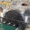Adıyaman'da restorasyonu devam ederken 400 tonluk demir iskelesi sele kapılan bin 800 yıllık tarihi Kızılin Köprüsü'nde restorasyon kaldığın yerden devam ediyor.