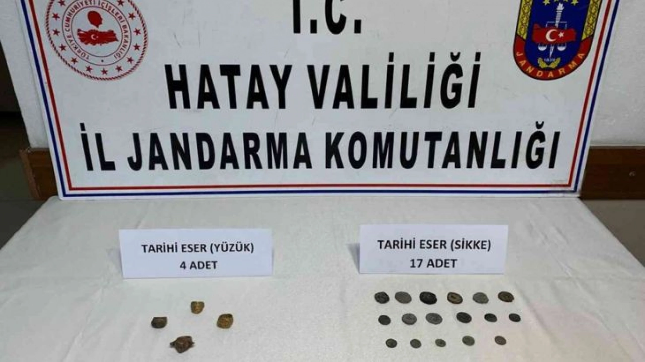 Jandarma dedektifleri JASAT ile İskenderun İlçe Jandarma Komutanlığı tarafından tarihi eser kaçakçılığı suçu kapsamında çalışma gerçekleştirdi. Pınarbaşı Mahallesinde ikamet eden S.K., N.K. ve F.N. isimli şahısların ellerinde bulunan tarihi eserleri satmak istedikleri bilgisi üzerine operasyon yapıldı. Şüpheliler 4 adet yüzük ve 17 adet sikke ile birlikte yakalandı.