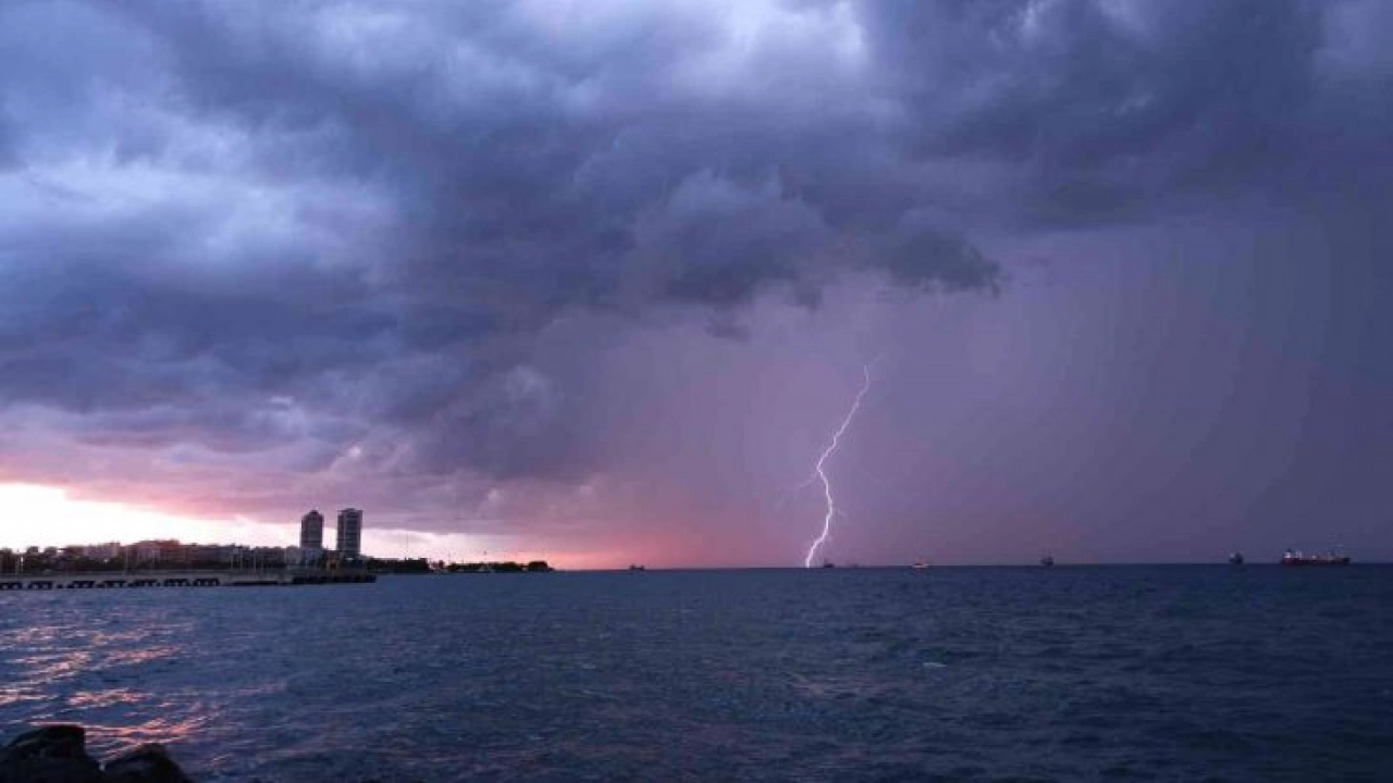 Hatay’da gün batımında İskenderun Körfezi üzerinde çakan şimşekler adeta görsel bir şölen oluşturdu.