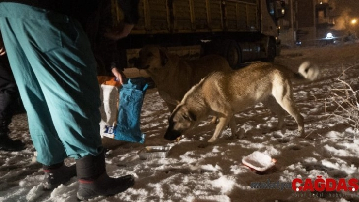 Ekiplerin besleme yaptıkları sırada yanlarına gelen sokak hayvanlarının karınlarının doyduğu anlar da kameralara yansırken, görenlere duygu dolu anlar yaşattı.