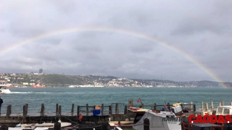 İstanbul’da sabah saatlerinde yer yer etkili olan yağmur sonrası gökkuşağı oluştu. İstanbul boğazı semalarında oluşan gökkuşağı adeta kartpostallık görüntülere sahne oldu. Boğazda oluşan gökkuşağı, 15 Temmuz Şehitler Köprüsü ile Fatih Sultan Mehmet Köprüsü arasında adeta yeni bir köprü oluşturdu.
