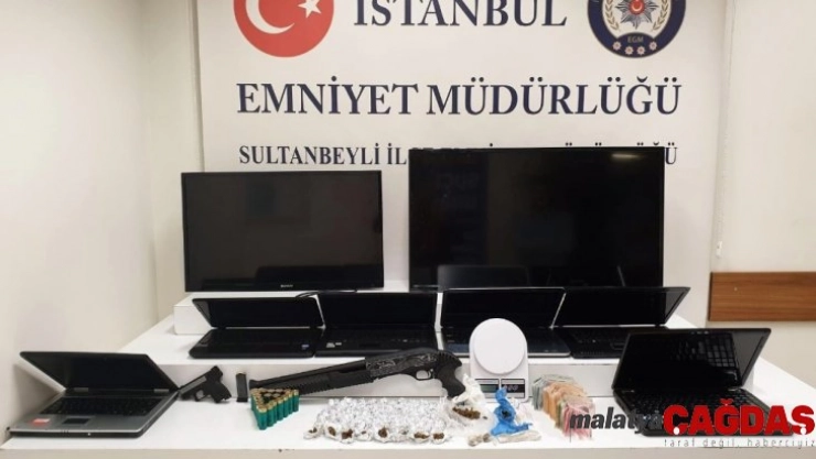 Şahısların yapılan üst aramasında; Yusuf B. isimli şahıstan 2 parça halinde 1,4 gram bonzai, Onur B. isimli şahsın üzerinden 1 adet tabanca ve 1 adet fişek ele geçirilirken, Onur B.’nin evinde yapılan aramada, 1 adet çalıntı olduğu değerlendirilen televizyon, 4 adet dizüstü bilgisayar, 101 adet toplamda 217 gram gelen bahçe içerisinde toprağa gömülü vaziyette kavanoz içerisinde bulunan skunk, 4 adet extacy hap, 2,9 gram kenevir tohumu, 0,5 gram taş kokain, 1 adet hassas terazi, 1 adet pompalı tüfek, 1 rulo alüminyum folyo ve 2.890 TL para ele geçirildi.