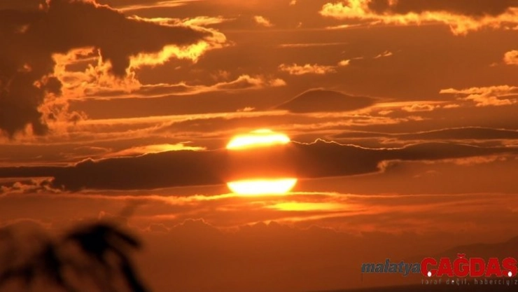 Bir ressamın fırça darbeleri gibi görünen bulutlar, güneşin tonlarına bürünürken görenlere eşsiz bir görüntü sundu. Gökyüzünde, güneşin batmasının ardından sarı tonların yerini mavi tonları aldı. Yağlı tablo gibi görünen gökyüzü kartpostallık görüntüler oluştururken görenleri kendisine hayran bıraktı.