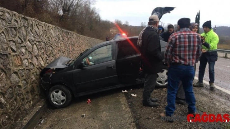 İstinat duvarına çarpan otomobildeki 4 kişi yaralandı
