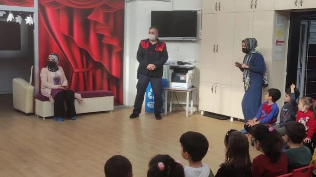 Adıyaman Belediyesi İtfaiye Müdürlüğü personeli, anaokulu öğrencilerine yangın eğitimi verdi.