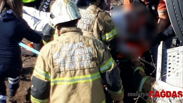 İzmir'de çimento yüklü tır devrildi: 1 yaralı