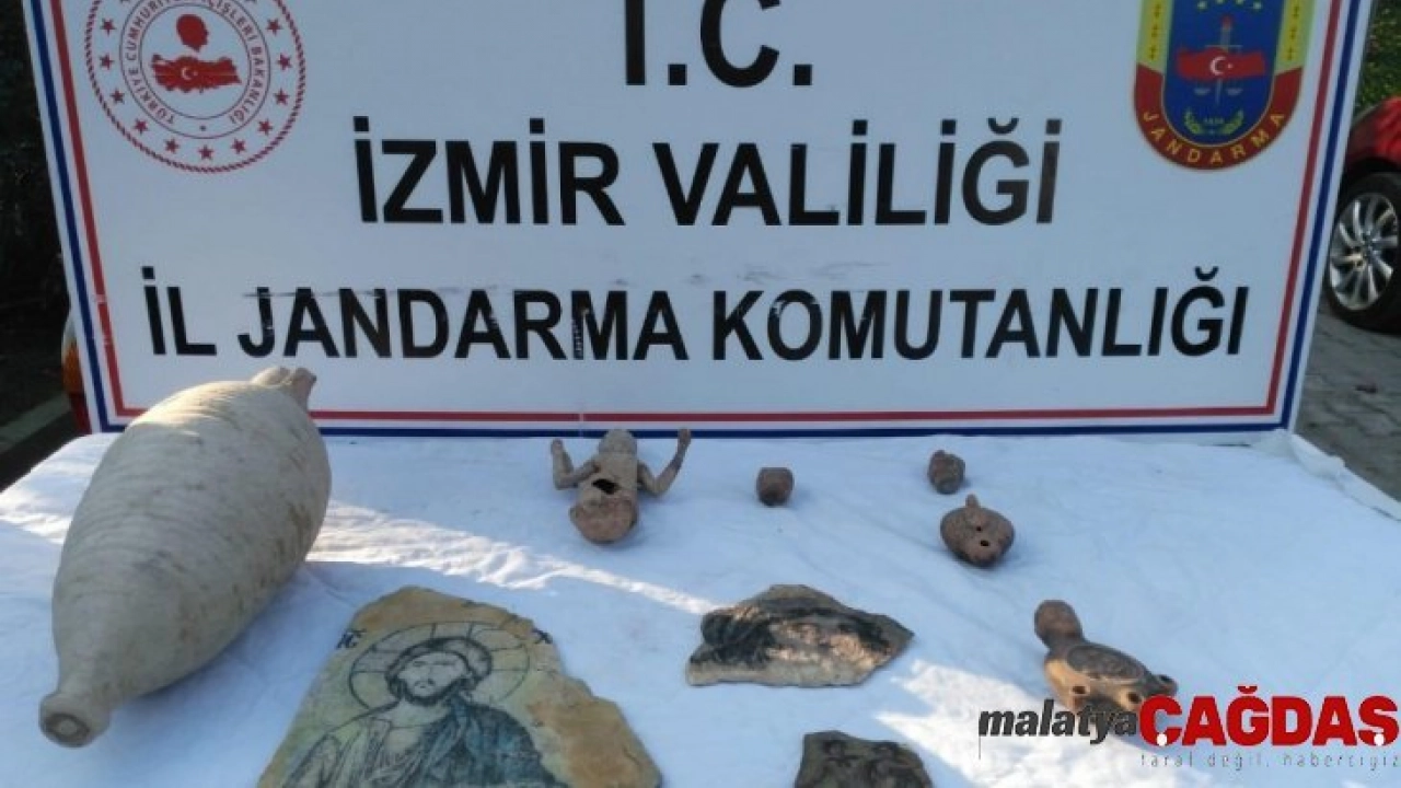 İzmir'in Kemalpaşa ilçesinde bir kişi, tarihi eserleri satmak üzereyken jandarma tarafından suçüstü yakalandı.
