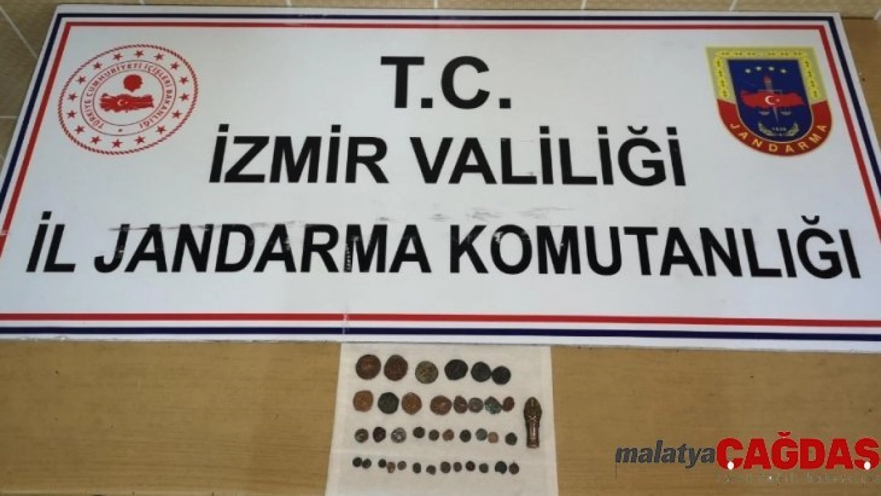 İzmir'in Buca ilçesinde, tarihi eser niteliğinde olduğu değerlendirilen 37 sikke ile heykel ele geçirilirken, soruşturma kapsamında 1 şüpheli gözaltına alındı.