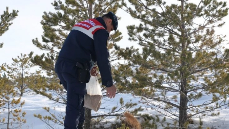 Sivas İl Jandarma Komutanlığı bünyesinde bulunan Çevre Doğa ve Hayvanları Koruma Tim Komutanlığı ekipleri yabani hayvanlar için doğaya yem bıraktı.