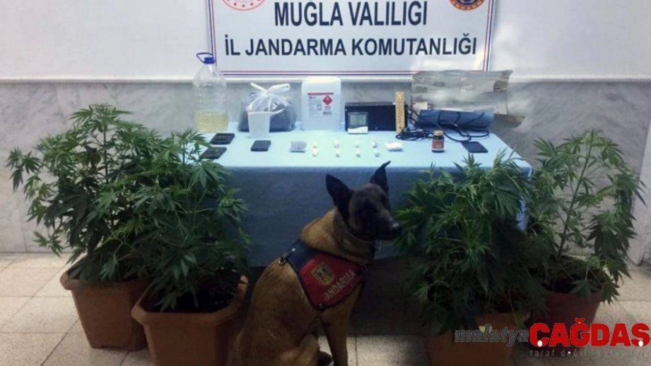 Edinilen bilgiye göre, Datça ilçe merkezinde uyuşturucu madde imal ve ticareti yaptığı ihbarı alındı. Muğla İl Jandarma Komutanlığı Kaçakçılık ve Organize Suçlarla Mücadele (KOM) ekipleri ve Datça İlçe Jandarma Komutanlığı’na bağlı ekipler belirlenen adreslere eş zamanlı operasyon düzenledi. 7 ayrı adrese gerçekleştirilen operasyonda Jandarma Narkotik köpeği ‘Kaptan’ da yer alırken, kenevir bitkisi yetiştirme düzeneği, kenevir bitkisi, uyuşturucu içme aparatı, sıvı reçine esrar, 30 gram Skunk ve 5 litre etil alkol ele geçirildi.
