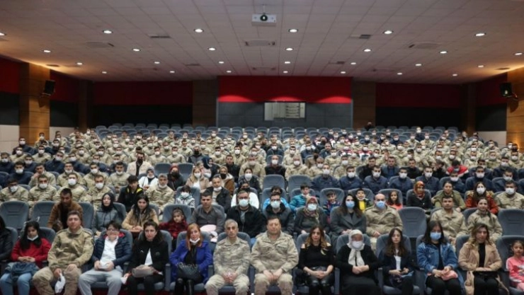 Malatya İl Jandarma Komutanlığı emrinde görevli rütbeli personel ve aileleri ile erbaş ve erlere Malatya Büyükşehir Belediyesi Fuar Alanı Konferans Salonunda ‘Kesişme: İyi ki Varsın Eren’ filmi izlettirildi.
