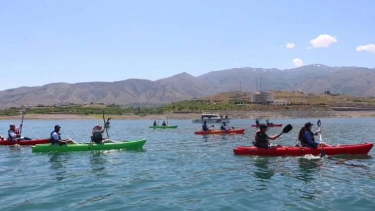 Malatya'da, Jandarma ve üniversite öğrenciler tarafından 19 Mayıs'ın yıl dönümü nedeniyle gölde bot gösterisi yapıldı.