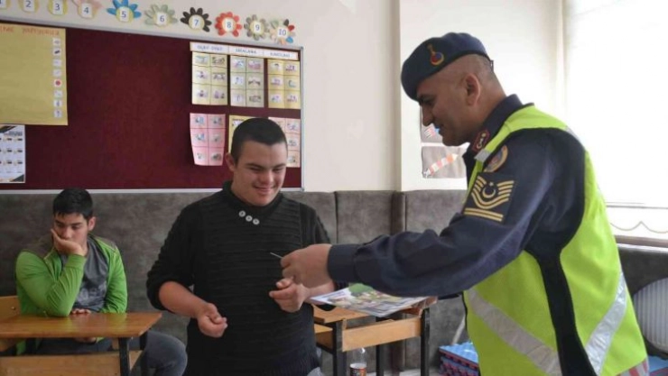 Şarkışla İlçe Jandarma Komutanlığına bağlı trafik ekipleri özel eğitim öğrencilerine özel ziyarette bulundu.