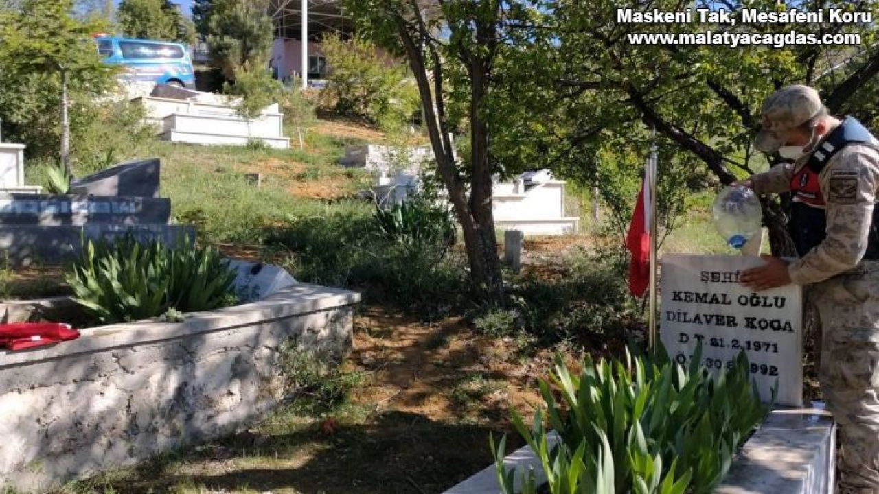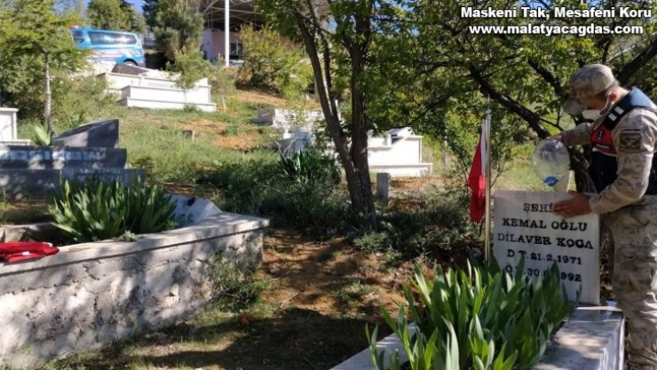 Malatya İl Jandarma Komutanlığı ekipleri, Ramazan Bayram öncesinde Şehitlikleri ziyaret ederek mezarların bakımlarını yaptılar.