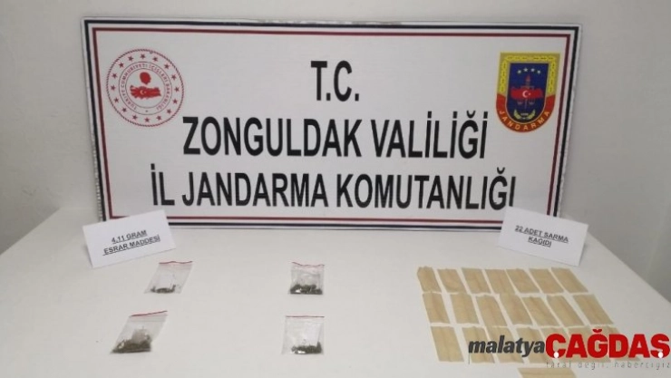 Zonguldak İl Jandarma Komutanlığınca yapılan istihbarat çalışmalar sonucunda; Çaycuma İlçe Jandarma Komutanlığınca Filyos beldesi Hisarönü Mahallesinde eski iskele mevkisinde icra edilen önleyici kolluk devriyesi esnasında bir araç durduruldu. Araç içerisinde bulunan Ö.A. (36) R.M. (34) T.Y. (35) ve S.S.A. (36) isimli şahısların şüpheli hareketler sergilemeleri üzerine yapılan aramada 4.11 gram esrar olduğu değerlendirilen madde ve 22 sarma kağıdı ele geçirildi.