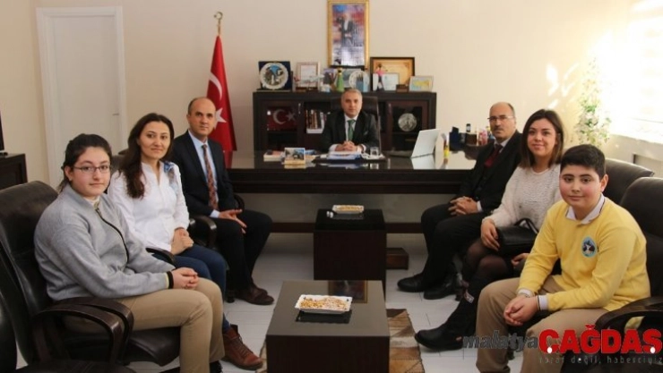 Jeopark Ortaokulu müdürü Enver Yılmaz, Türkçe öğretmeni Zeliha İğdi, Görsel sanatlar öğretmeni Rahime Uğur, öğrenciler Enes Efe İğdi ve Zarife Altekin’in Kaymakam Duru’yu ziyaretine, İlçe Milli Eğitim Müdürü Adem Sümen’de eşlik etti.