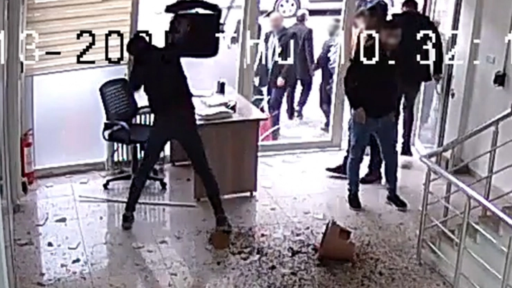 İlçe yöneticisine saldırarak güvenlik görevlisini darp eden saldırganlar, ölüm tehditleri savurarak hizmet binasına zarar verdi. Güvenlik görevlilerinin müdahalesi ile olaylar büyümeden önlenirken saldırganlardan 3 kişi gözaltına alındı.